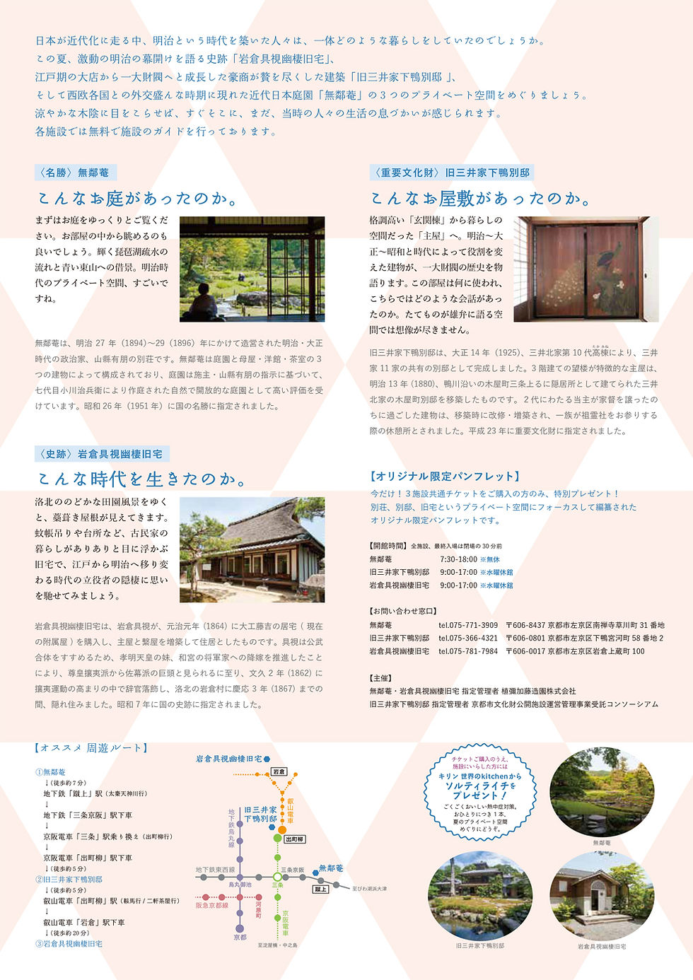 旧三井家下鴨別邸 9:00-17:00 ※水曜休館 tel.075-366-4321 〒606-0801 京都市左京区下鴨宮河町 58 番地 2